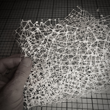 Schwarz und Weiß und sonst nichts: das ist das Prinzip des Scheren- bzw. Messerschnittes. Die englische Bezeichnung PaperCut trifft es meiner Ansicht nach besser – denn was passiert, ist aus einem simplen Bogen Papier durch ”Wegschneiden” etwas entstehen zu lassen. Wie auch immer: Mit Schere und Skalpell das Wesentliche herauszuarbeiten ist eine Herausforderung der besonderen Art. Die Übersetzung von Zeichnung in diese Technik ist für mich hochspannend. Denn die Zeichnung, welche dem PaperCut zugrunde liegt – ob abstrakt oder figürlich – ist meist etwas ”Schnelles”, ”Hingeworfenes“, das Schneiden jedoch ein langer und meditativer Prozess, für den es Geduld braucht und bei dem immer wieder Innehalten und Entscheiden gefragt ist.